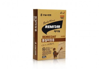 바닥에 타일을 압착해서 붙일 때도 레미탈이 빠질 수 없겠죠? 현장에서 물과 반죽한 레미탈 압착용을 쓱쓱 바르고 요철을 내서 타일을 얹고 고무망치로 통통통! 참 쉽죠잉?